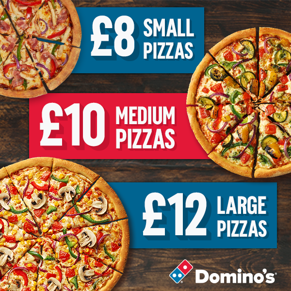 Known for our amazing pizza deals, Domino's has been serving delicious pizza in the UK since 1985. With pizza delivery & takeaway options available, we offer ultimate convenience. You'll find favourites like Cheese & Tomato & Pepperoni Passion, plus limited edition & local specialities specific to your store - all hand made to order using 100% mozzarella, vine-ripened tomatoes, and our signature fresh dough. Our vegetarian & gluten free pizzas offer something for everyone. Our sides & desserts menu is waiting to be explored too - chicken wings, loaded fries, our famous Domino's Cookies, & so much more. Our Lunch range offers light bites like Cheeky Little Pizzas plus Hot & Cheesy Wraps. Order now & satisfy those cravings!