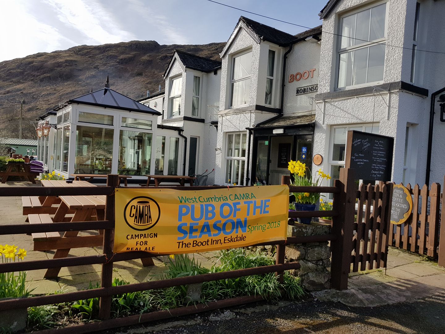The Boot Inn nestles in the tiny hamlet of Boot, deep in the heart of the Eskdale Valley. Within easy walking distance of The English Lake Districts largest and most majestic fells, yet only 7 miles from the sea. We provide first class food, drink and accommodation with nine letting bedrooms, bar, conservatory and snug areas, we also have ample car parking and a large beer garden. The inn itself has been catering for the hungry and thirsty travellers since the 17th century, offering a selection of traditionally kept cask ales, fine wines, sprits, continental beers, soft drinks and excellent food.