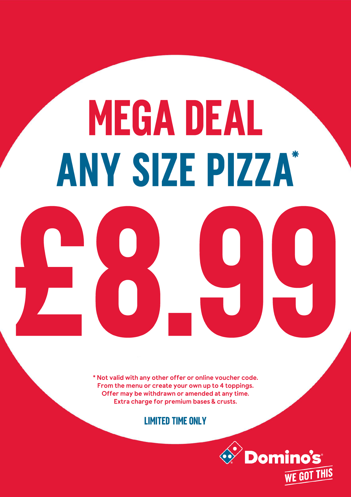 Known for our amazing pizza deals, Domino's has been serving delicious pizza in the UK since 1985. With pizza delivery & takeaway options available, we offer ultimate convenience. You'll find favourites like Cheese & Tomato & Pepperoni Passion, plus limited edition & local specialities specific to your store - all hand made to order using 100% mozzarella, vine-ripened tomatoes, and our signature fresh dough. Our vegetarian & gluten free pizzas offer something for everyone. Our sides & desserts menu is waiting to be explored too - chicken wings, loaded fries, our famous Domino's Cookies, & so much more. Our Lunch range offers light bites like Cheeky Little Pizzas plus Hot & Cheesy Wraps. Order now & satisfy those cravings!