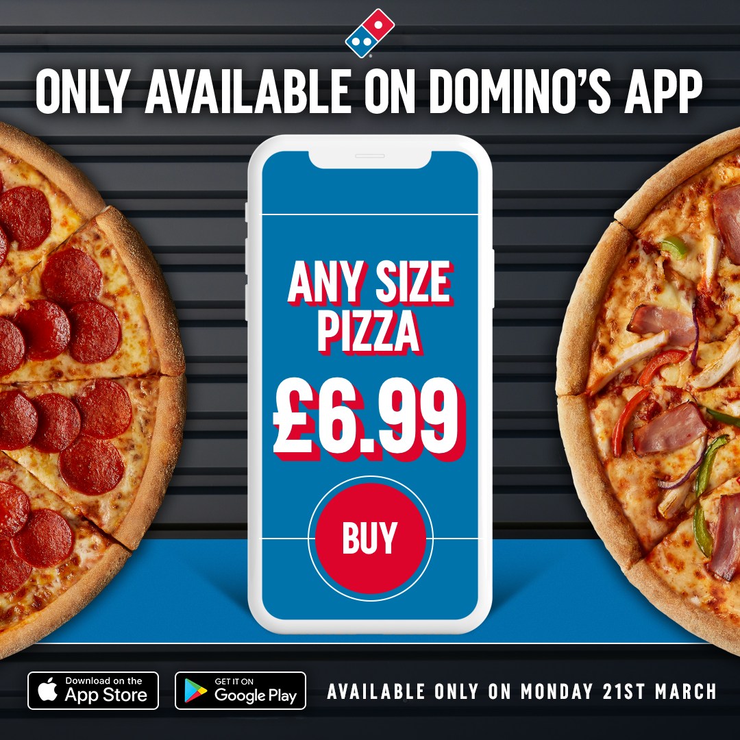Known for our amazing pizza deals, Domino's has been serving delicious pizza in the UK since 1985. With pizza delivery & takeaway options available, we offer ultimate convenience. You'll find favourites like Cheese & Tomato & Pepperoni Passion, plus limited edition & local specialities specific to your store - all hand made to order using 100% mozzarella, vine-ripened tomatoes, and our signature fresh dough. Our vegetarian & gluten free pizzas offer something for everyone. Our sides & desserts menu is waiting to be explored too - chicken wings, loaded fries, our famous Domino's Cookies, & so much more. Our Lunch range offers light bites like Cheeky Little Pizzas plus Hot & Cheesy Wraps. Order now & satisfy those cravings!