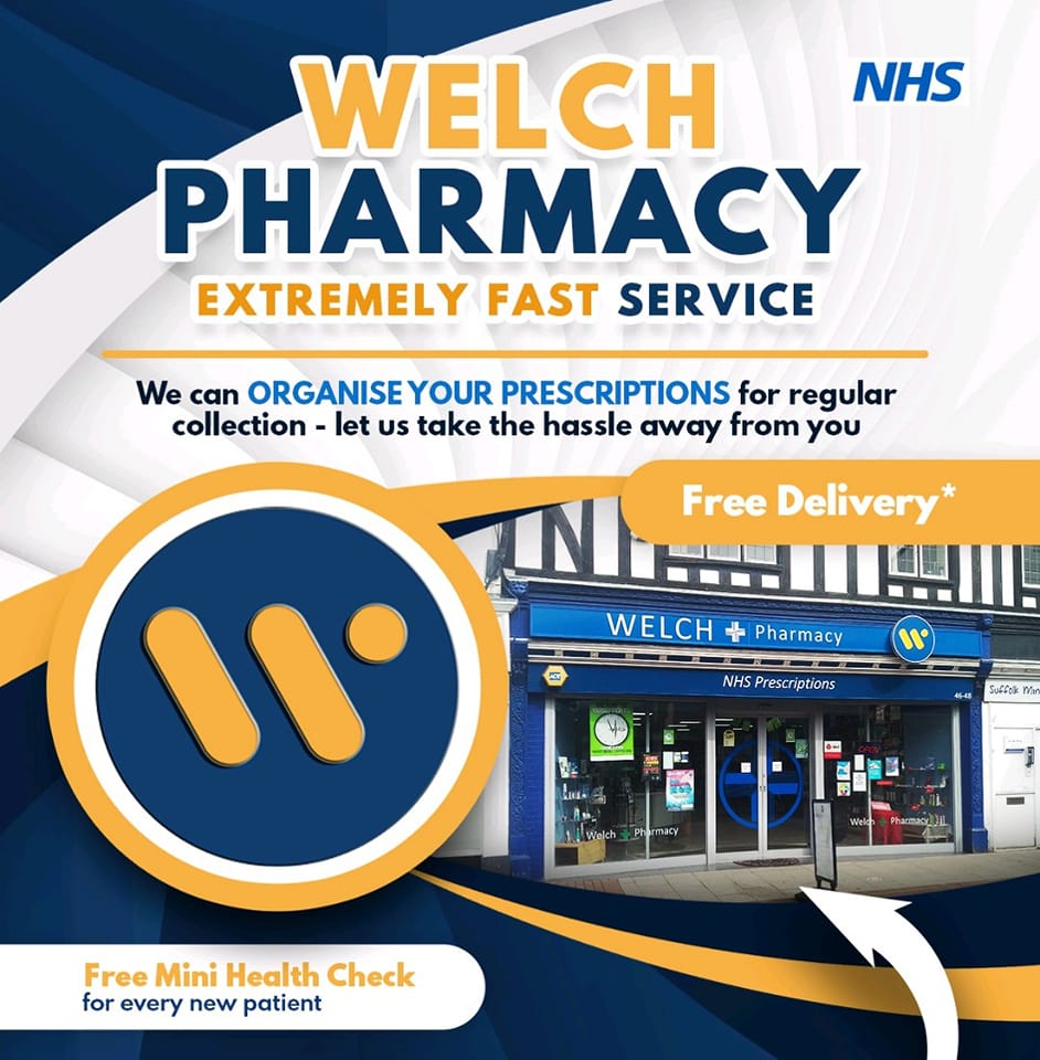 Welch Pharmacy is a family run community pharmacy serving Ipswich Town. Our passion, attention to detail and care sets us apart from the rest. We will always do our best to provide outstanding service and a friendly face. We are proud to offer novel services, such as our comprehensive health review completed in branch with one of our highly trained teams. To find out more about this, book a health review or view other services we offer on our website.