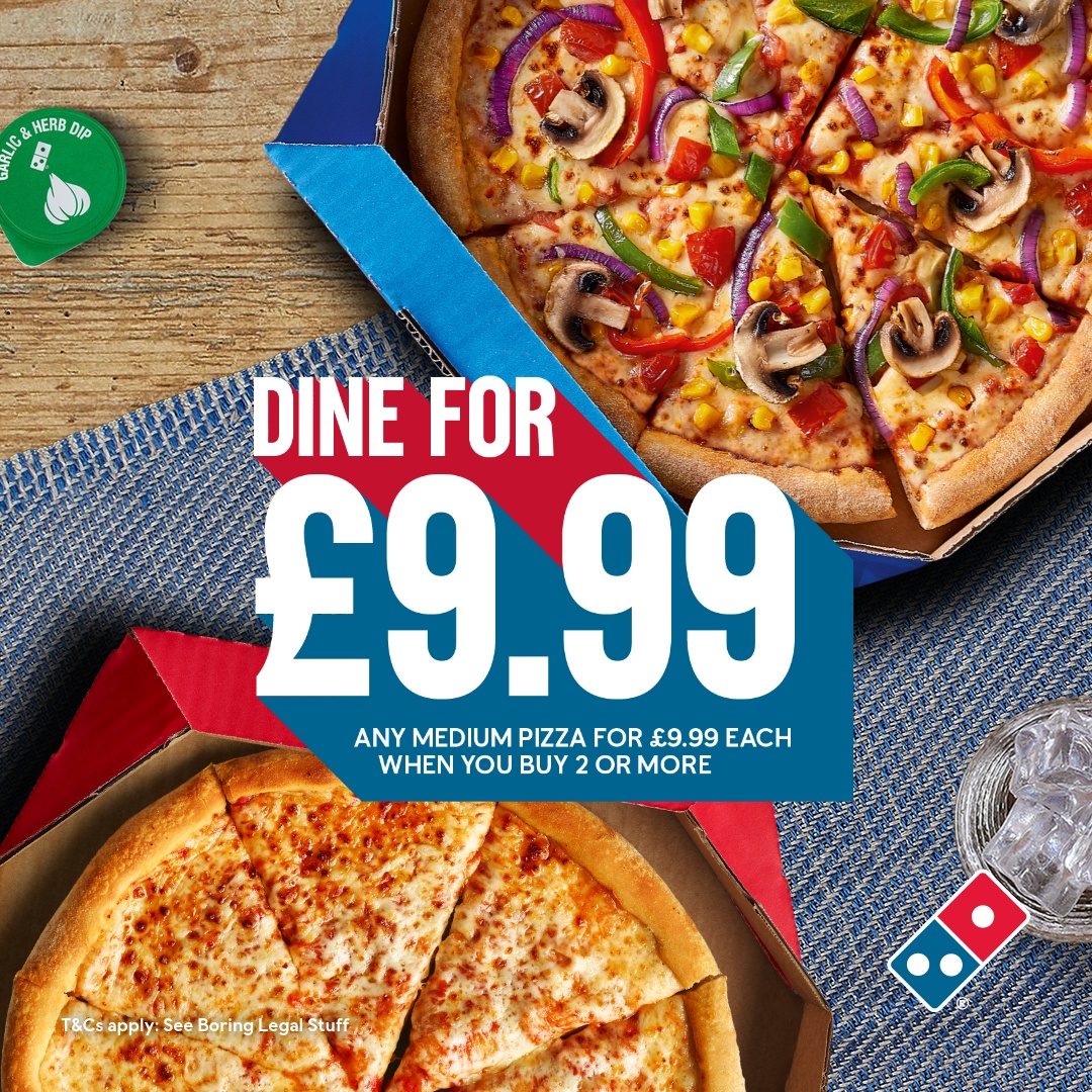 Known for our amazing pizza deals, Domino's has been serving delicious pizza in the UK since 1985. With pizza delivery & takeaway options available, we offer ultimate convenience. You'll find favourites like Cheese & Tomato & Pepperoni Passion, plus limited edition & local specialities specific to your store - all hand made to order using 100% mozzarella, vine-ripened tomatoes, and our signature fresh dough. Our vegetarian & gluten free pizzas offer something for everyone. Our sides & desserts menu is waiting to be explored too - chicken wings, loaded fries, our famous Domino's Cookies, & so much more. Our Lunch range offers light bites like Cheeky Little Pizzas plus Hot & Cheesy Wraps. Order now & satisfy those cravings!