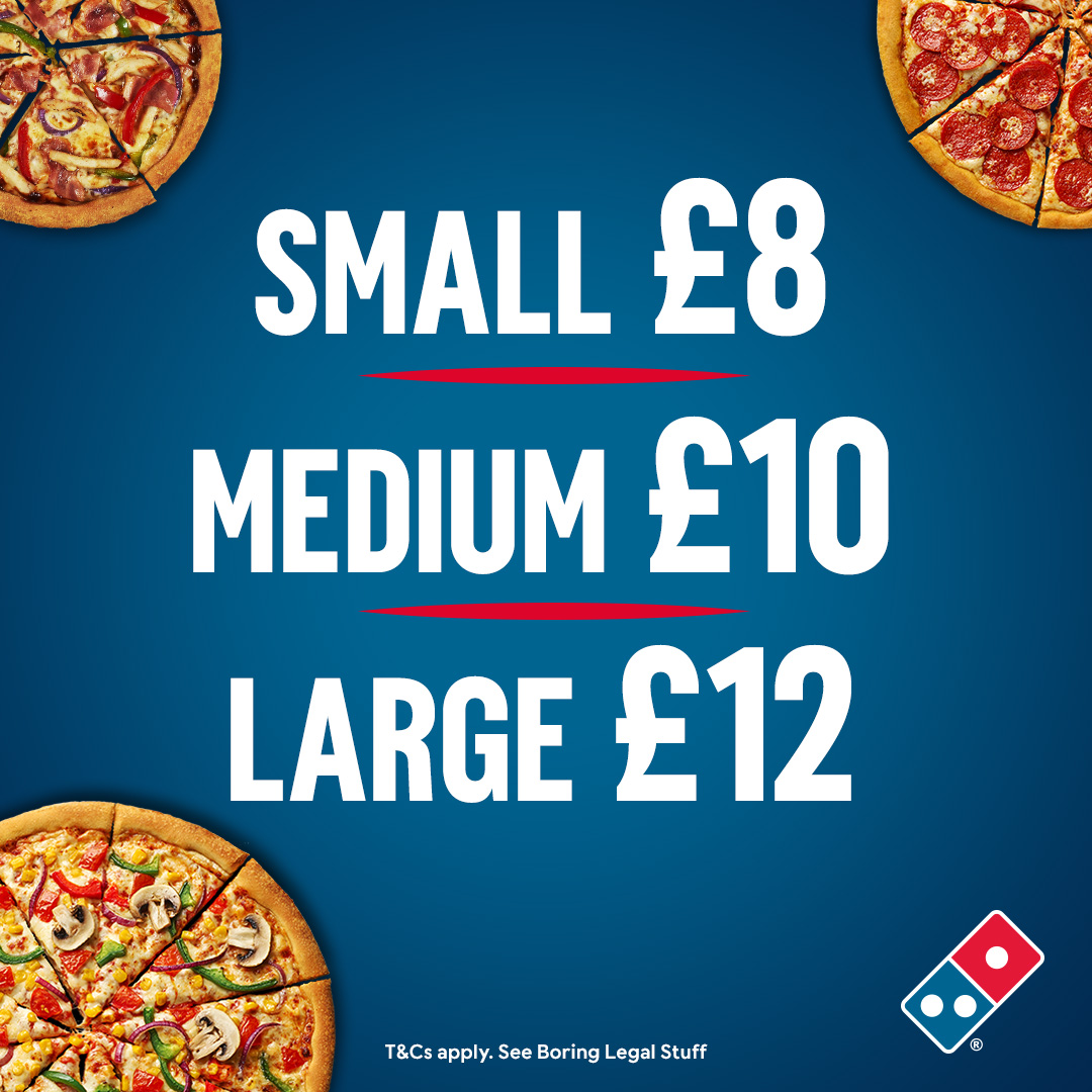 Known for our amazing pizza deals, Domino's has been serving delicious pizza in the UK since 1985. With pizza delivery & takeaway options available, we offer ultimate convenience. You'll find favourites like Cheese & Tomato & Pepperoni Passion, plus limited edition & local specialities specific to your store - all hand made to order using 100% mozzarella, vine-ripened tomatoes, and our signature fresh dough. Our vegetarian & gluten free pizzas offer something for everyone. Our sides & desserts menu is waiting to be explored too - chicken wings, loaded fries, our famous Domino's Cookies, & so much more. Our Lunch range offers light bites like Cheeky Little Pizzas plus Hot & Cheesy Wraps. Order now & satisfy those cravings!